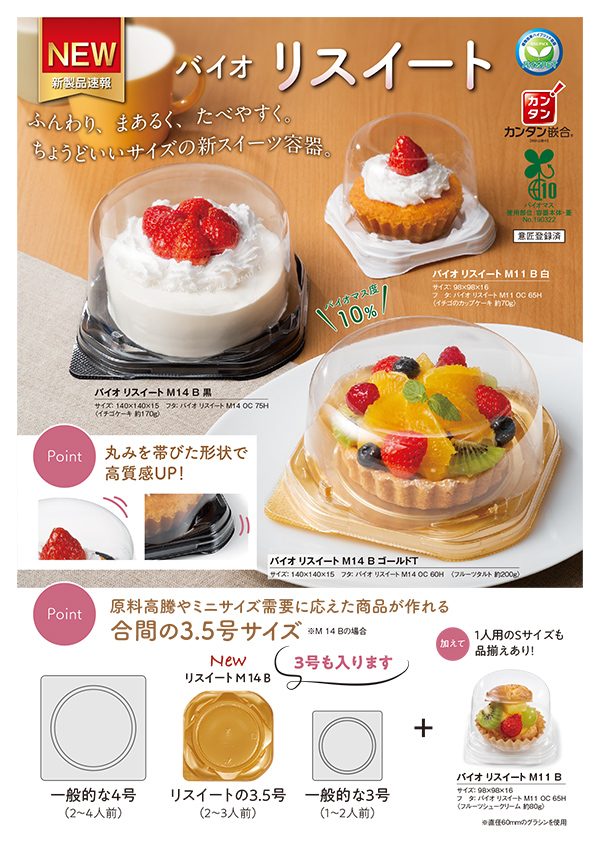 戻る ふんわり、まあるく、たべやすく。 ちょうどいいサイズの新スイーツ容器。 バイオ リスイート 商品チラシ | バイオ リスイート | 2025-10-17 #人手不足 #環境対応 #新商品 #デザート #商品チラシ #カンタン嵌合 #バイオリスイート バイオリスイート 商品チラシ 戻る